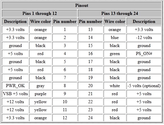 সাধারনত ATX12V 2.0, EPS12V, PCI Express 2.0/3.0 মাদারবোর্ড গুলা ২৪ পিন ইউজ করে, ১৯৯৫-২০০৩ সালের ATX, ATX12V 1.0, ATX12V 1.3 এই মাদারবোর্ড গুলা ২০ পিনের সকেট ইউজ করে।