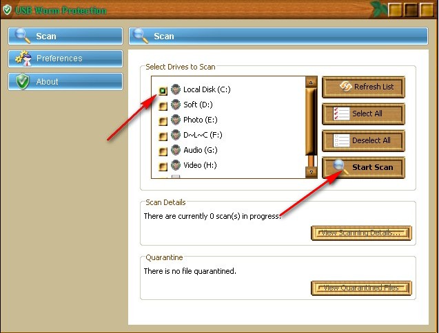 সেটাপ দেওয়ার পর আপনি যে ভাবে ঢুকবেন আমি যেটি স্কীনশট দিয়েছি সেটির নিচে দেখবেন টেরে বারে একটি লালটির চিহ্ন দেওয়া আছে সেখানে মাউসের রাউট বাটন ক্লিক করুন সেখানে অনেক গুলো অপশন আসবে সেখানে আপনি Scan for Worms ক্লিক করুন এবং নিচে স্কীনশট ফোলো করুন