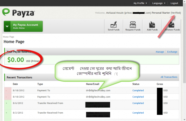 বলার তেমন কিছুই নেই! আপনারা স্ক্রিনে দেখসেন আমার payza account (Alertpay)থেকে টাকা গায়েব হয়েছে !!!