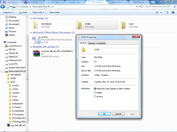 বাসায় এসে পুনরায় পিসিতে কার্ড রীডার লাগানোর পর DCIM ফোল্ডারের ভিতর কোন ছবি পাই না। কিন্তু ফোল্ডার প্রোপারটিস এ শো করে 2.43GB ।