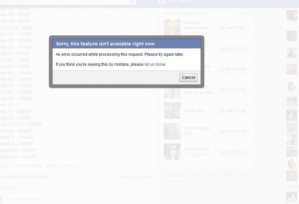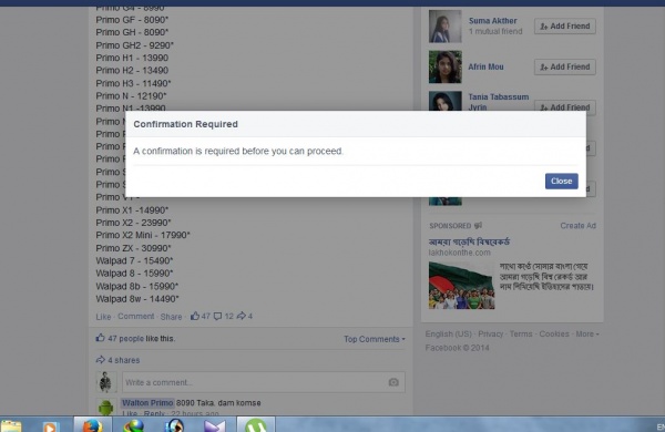 হ্যালো টুনার ভাইরা কেমন আছেন, আশা করি ভাল আছেন। আমি আমার ফেচবুকে কয়দিন যাবত একটা সমস্যায় পরেছি। আমি কোন পোস্ট " Like " দিতে পারছি না। লাইকে ক্লিক করলেই নিচের ডায়ালগ বক্স গুলো টা আসে। খুবি সমস্যায় পরেছি। Plz কেও যদি আমার সমস্যা টি সমাধান করেন তাহলে উপকৃত হতাম। ধন্যবাদ সবাইকে ।