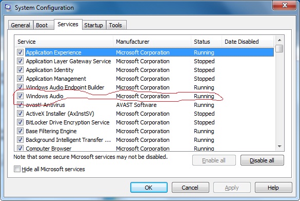 আবারও মখা হইলাম*** msconfig এ গিয়া সার্ভিস দেখলাম। সাউন্ড চলতাছে। কিন্তু আমি পাইতাছি না।