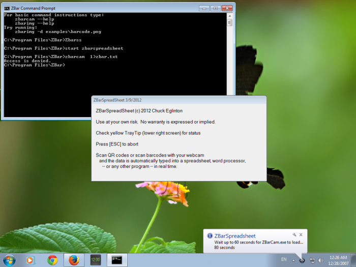 এই সফটওয়্যার এর মাধ্যমে ওয়েবক্যামকে বারকোড রিডার হিসেবে ব্যবহার করা যায়। সফটওয়্যারটা চালু করা আমার খুব প্রয়োজন। অফিসিয়াল ওয়েবসাইট এ দেয়া নিয়ম অনুযায়ী কাজ হচ্ছে না। সফটওয়্যারটি কমান্ড দিয়ে চালু করতে হয়। তারপর নতুন উইন্ডো আসে। সর্বোচ্চ ৬০ সেকেন্ড অপেক্ষা করতে হয়। কিন্তু কমান্ড দিলে Access is denied দেখাচ্ছে। নতুন উইন্ডো আসছে কিন্তু ১২০ সেকেন্ড পার হয়ে গেলেও রিডার উইন্ডো আসছেনা। তারপর একা একাই সফটওয়্যারটি বন্ধ হয়ে যাচ্ছে। কাজ করছে না। খুব চেস্টা করলাম। কিন্তু পারছিনা।