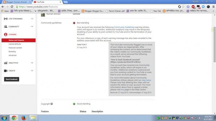 Maybe You Upload Bad Video Which Broke YouTube Rules. No Tension 6 month pore thik hoia zabe