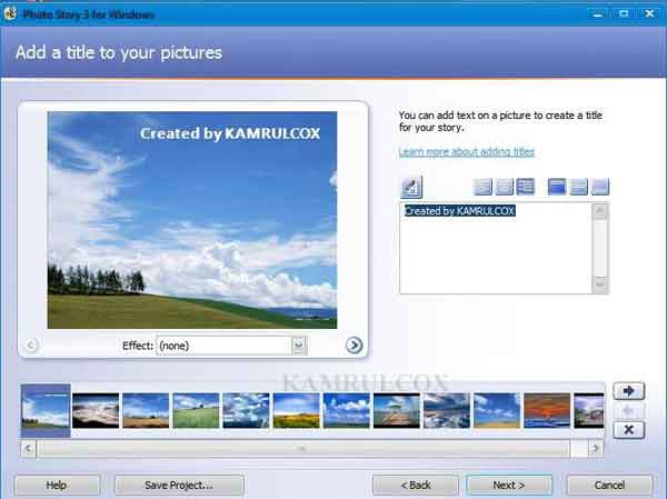 Microsoft Photo Story3। এটি মুলত Windows Movie Maker এর উন্নত সংস্করণ। তাছাড়া ইন্সটল করার পর এটি Windows Movie Maker এর সাথে সংযুক্ত হয়ে এর কাজটাকে সহজভাবে ব্যবহারের উপযোগী করে তুলে।