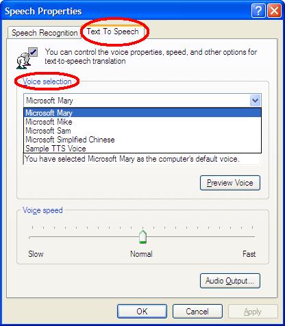 ৬. এরপর "Text to Speech" Tab এ click করুন আর "Voice Selection" থেকে ইচ্ছা মতো select করে "Ok" বাটনে click করে দিন ।