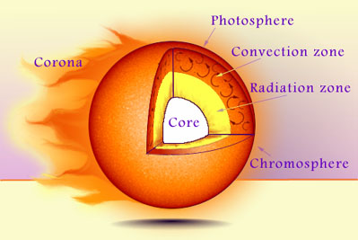সূর্যের ছয়টি স্তর।