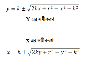অনুরূপভাবে ওয়াই এর বিভিন্ন মানের জন্য এক্স এর বিভিন্ন মান পাওয়ার জন্য কোয়াড্রাটিক ফরমূলা থেকে উপরের সমীকরণ পাই। কোয়াড্রাটিক ফরমূলা সম্পর্কে প্রায় সবাই জানেন। তারপরও বিস্তারিত জানতে এখানে দেখতে পারেন।