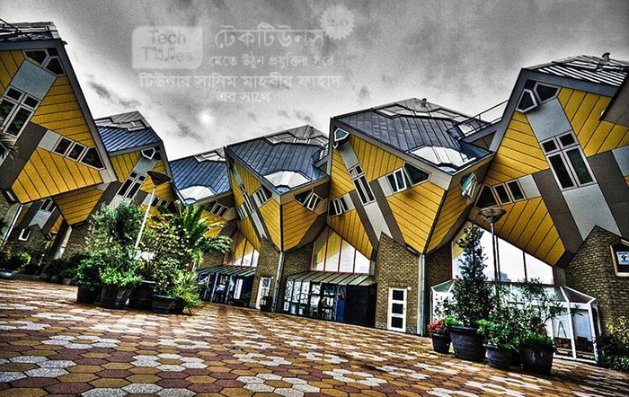 এই অসাধারন বাড়িটি তৈরী করেছেন নেদারল্যান্ডস এর Piet Blom নামক একজন ব্যক্তি। তাকে যখন একটি তৈরী করা বাড়িকে বর্ধিত করতে বলা হয় তখন তিনি তার ইউনিক আইডিয়া কাজে লাগান। একটা গাছের মতো করে ডিজাইন করতে গিয়ে তিনি ঘনক আকৃতির ডিজাইন করে ফেলেন। বিশাল এই বাড়িটির প্রত্যেকটা ঘনকে ৩টি করে লিভিং স্পেস আছে।