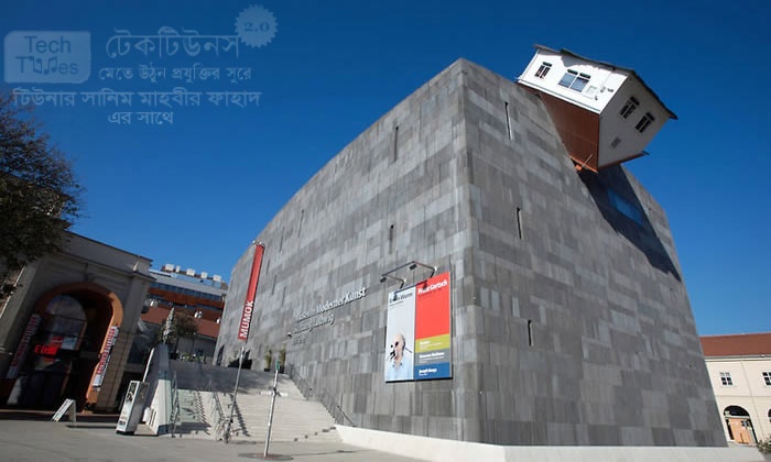 এটা অস্ট্রিয়ার সবচেয়ে বড় আর্ট মিউজিয়াম। এই বিল্ডিংটি ডিজাইন করেন Erwin Wurm নামক একজন স্থপতি। এই বাড়িটি রিপ্রেজেন্ট করে যে একটি ছোট্ট বাড়ি এই মিউজিয়ামের ছাদে আছড়ে পড়েছে। আর এ কারনেই এর নাম দেওয়া হয় House Attack! বিচিত্র দুনিয়া!!!