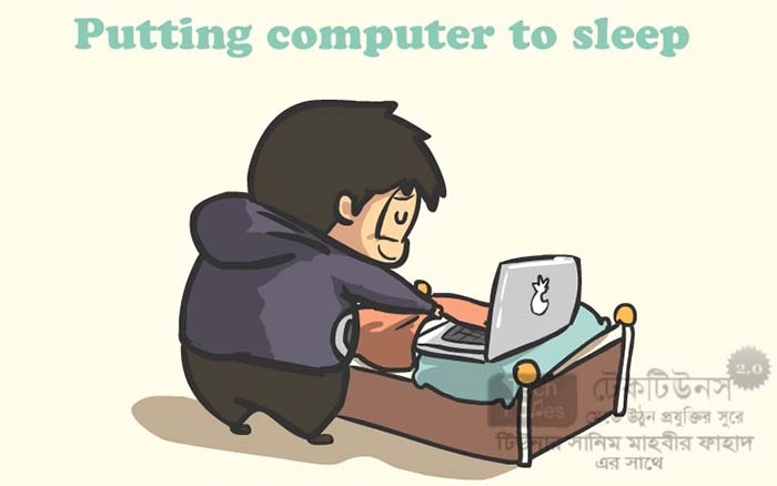 Sleep Mode হলো এমন একটি পাওয়ার সেভিং অবস্থা যেটাকে আমরা একটি মুভিকে কিছুক্ষনের জন্য থামিয়ে রাখার সাথে তুলনা করতে পারি। মুভি দেখার সময় কোন বিশেষ প্রয়োজন হলে আপনি যেমন মুভিটাকে থামিয়ে রেখে আবার আগের জায়গা থেকে শুরু করতে পারেন ঠিক তেমনি Sleep Mode এর সাহায্যে আপনি কম্পিউটারের যেকোন কাজকে যেকোন অবস্থায় থামিয়ে রাখতে পারবেন। যখন কম্পিউটারকে Sleep Mode এ রাখা হয় তখন কম্পিউটারের সকল কাজ বন্ধ হয়ে যায় এবং কোন চালু থাকা ডকুমেন্ট কিংবা অ্যাপ্লিকেশন মেমরিতে জমা হয়ে যায়। কিন্তু আপনি চাইলে কয়েক সেকেন্ডের মধ্যেই আবার কম্পিউটারকে স্বাভাবিক অবস্থায় ফিরিয়ে আনতে পারবেন।