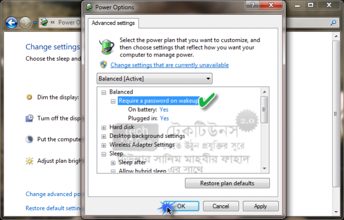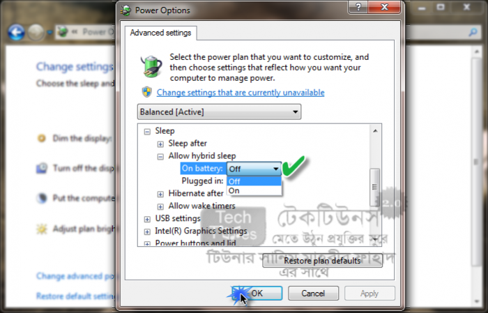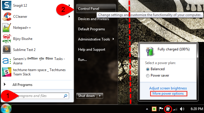 Hybrid Sleep ডেস্কটপে আগে থেকেই এনাবল করা থাকে এবং যথারীতি ল্যাপটপে ডিজেবল করা থাকে। আমি ল্যাপটপ এবং ডেস্কটপ থেকে কীভাবে Hybrid Sleep অপশনে পৌছাতে হবে সেটা দেখিয়ে দিচ্ছি। নিচের প্রত্যেকটা ধাপ মনযোগ দিয়ে লক্ষ্য করুন।