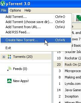 ১) আপনার utorrent সফটওয়্যার ওপেন করুন এবং নিচের ছবির মতো File>Create new torrent এ ক্লিক করুন।