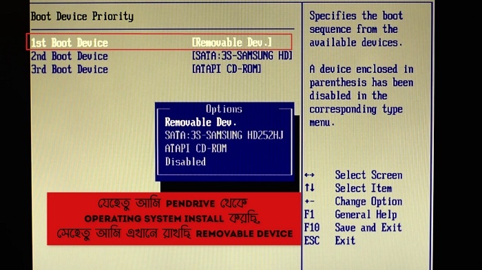 আপনার কাছে যদি এখন অপারেটিং সিস্টেমের বুটেবল ডিস্ক বা পেনড্রাইভ থাকে তাহলে আসুন আমরা মূল কাজে যাই।