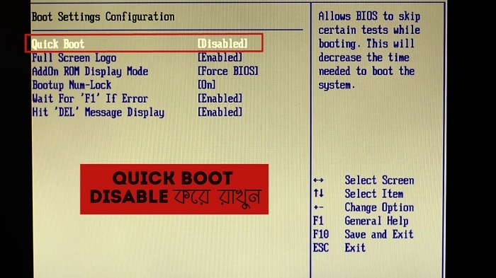 তারপর আপনি Secure Boot/Fast Boot/Quick Boot = Disable করুন