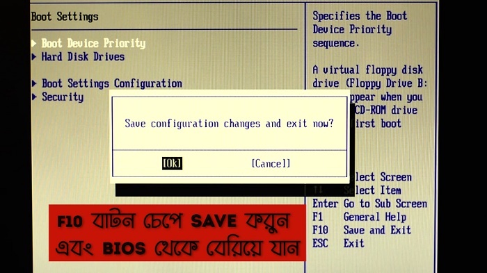 F10 বাটন চেপে Save করে BIOS থেকে বেরিয়ে যান, কম্পিউটার Restart হবে