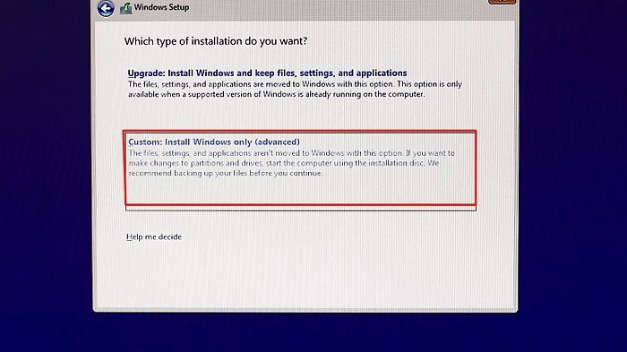 Custom: Install Windows Only (Advanced) বক্সটি তে Click করুন