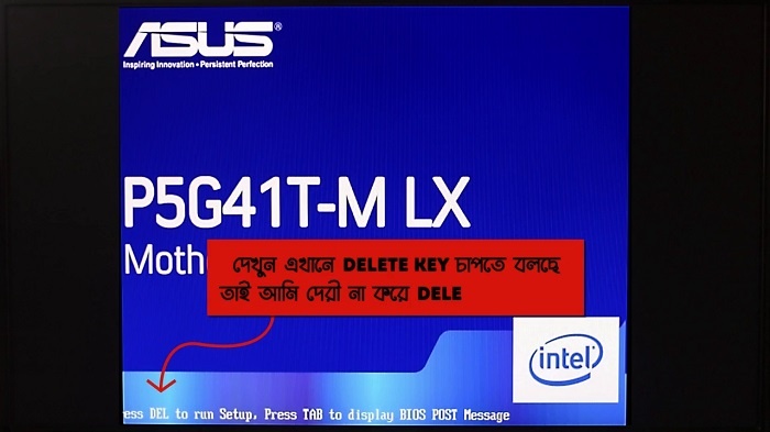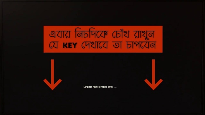 আপনার মাদারবোর্ডের জন্য কোন Key টি চাপতে হবে তা জানতে কম্পিউটার চালু হওয়ার সময় মনিটরের স্ক্রিনের নিচদিকে লক্ষ্য রাখুন। যখনই স্ক্রিনে লেখাটি দেখবেন, তক্ষুনি সাথে সাথে নির্ধারিত বাটনটি ক্রমাগত চাপতে থাকবেন, যদি দেরী করে ফেলেন, তাহলে কাজ হবে না, আপনাকে আবারো কম্পিউটার রিস্টার্ট করতে হবে।