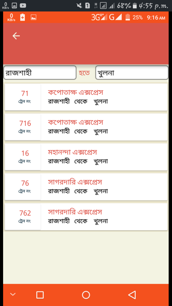 এইবার আপনি যে ট্রেনে যেতে ইচ্ছুক সেই ট্রেনের নামে টাচ্ করুন। দেখুন উক্ত ট্রেনটির সময় আপনি জানিতে পারবেন।