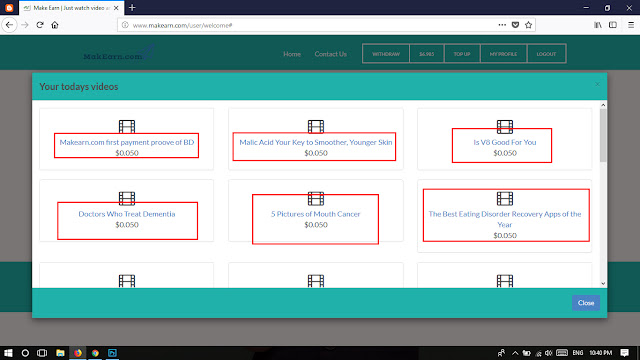 এই ভাবে ২০টা ভিডিও দেখুন প্রতিদিন আপনার ৮০ ($1) টাকা করে ইঙ্কাম হবে। এই ইঙ্কাম বাড়ানোর অনেক উপায় আছে… আপনাকে রেফারেল বাড়াতে হবে। ১০জন রেফারেল করতে আপনি প্রতিদিন ৮০টাকা করে বোনাস পাবেন…
