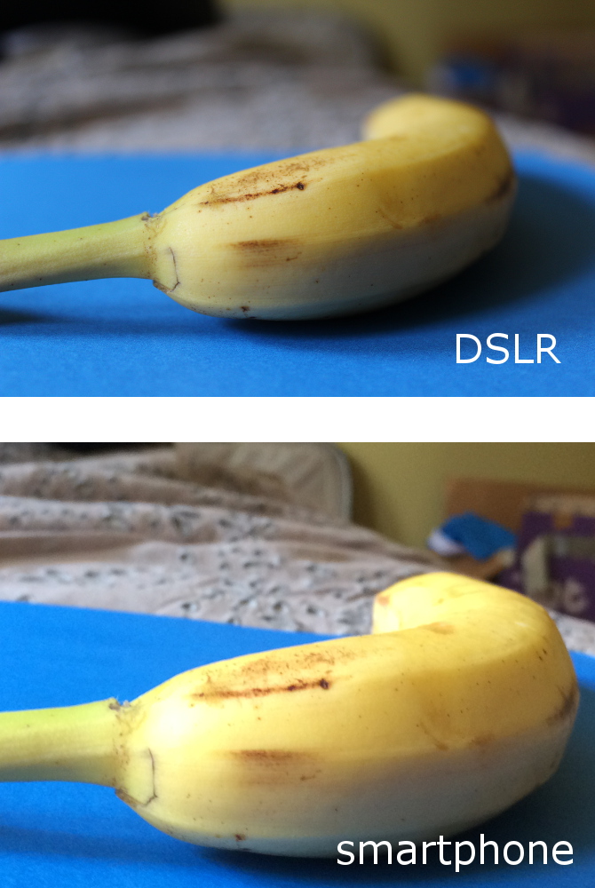 অন্যদিকে ডিএসএলআর দিয়ে তোলা ছবিটায় কলাটির নেচারাল রং তুলে এসেছে। আর এদিকে স্মার্টফোন দিয়ে তোলা ছবিতে ন্যাচারেলিই কালার ওয়াশ হয়ে গিয়েছে। তাই মনে রাখতে হবে যে এই দুটি প্লাটফর্মের ভিতর নিজস্ব কিছু পার্থক্য রয়েছে।