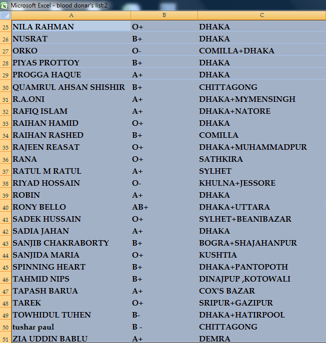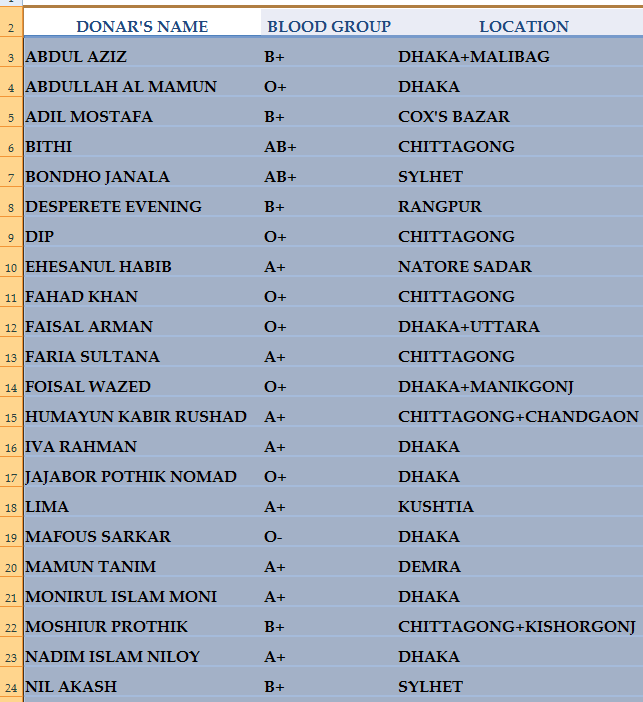 আমাদের রক্তদাতাদের লিস্ট নিচে দিলাম .. ২ টি পার্টে