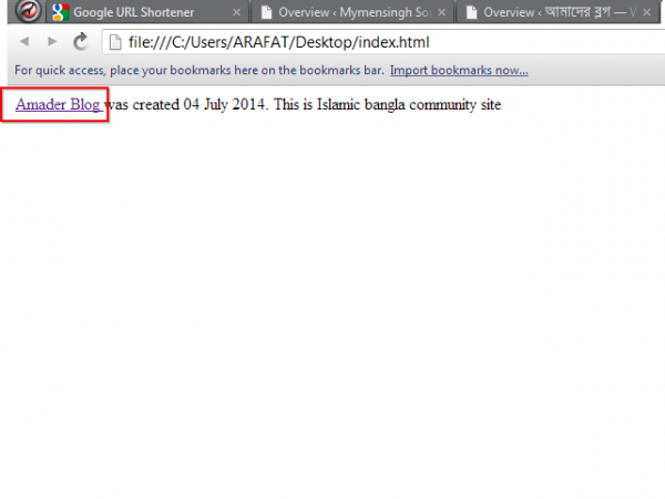 <html> <head> <title> This is Site Title </title> </head> <body> <a href="http://www.amaderblog.net"> Amader Blog </a> was created 04 July 2014. This is Islamic bangla community site </body> </html>