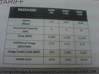 ওয়াইমাক্স এর নতুন package আসছে . Wimax company augere, the brand name qubee is offer tarrif plan. 512 kbps per moth chargs tk3400. বিস্তারিত এখানে