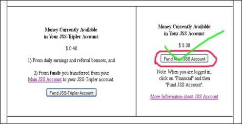 এবার দেখতে পারবেন আপনার “Main JSS Account” একাউন্টে ১০ ডলার ডিপোজিট হয়েছে। এখন তার বাম পাশে লেখা “Fund JSS trippler account” বাটনে ক্লিক করুন। (নিচের ফটোর মতো)