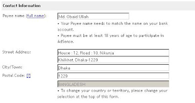 তারপর Contact Information দিন, এখানে Payee name এ আপনার নাম দিন, আর তা যেন অবশ্যই Bank Account এর সাথে মিল থাকে । Bank Account না থাকলে আপনার রিয়াল নাম দিন, ওই নামে পরে Bank Account একাউন্ট করে নিবেন । আর আপনার ঠিকানা অবশ্যই আসল ঠিকানা দিবেন । কেননা গুগল আপনার ওই ঠিকানায় চিঠি পাঠাবে এবং আপনাকে ভেরিফাই করবে ।