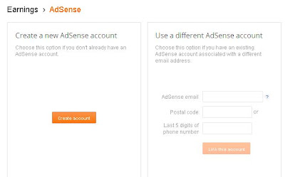 Create a new Adsense Account tab এ Create account এ ক্লিক করুন
