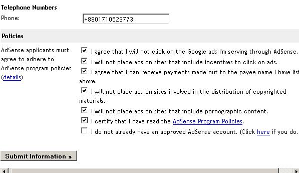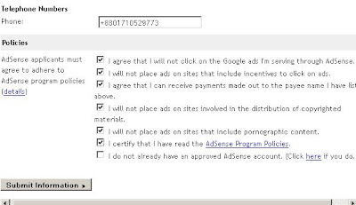 সর্বশেষে আপনার মোবাইল নাম্বার দিন এবং Policies এর সকল অপশন এ টিক দিয়ে Submit Information এ ক্লিক দিন ।