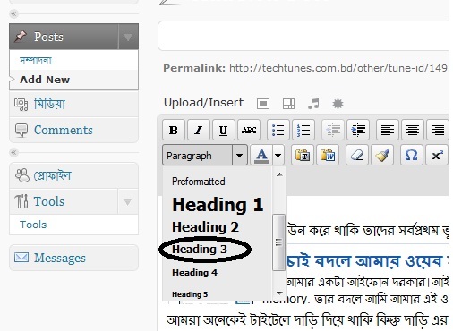 আমরা অনেকেই সাবটাইটেল মানে টিউনের মধ্যে সাবটাইটেল দিয়ে থাকি h2 কোডটি কিন্তু যখন সাবটাইটেলের নিচে কোন টাইটেল আমরা ব্যবহার করব তখন ব্যবহার করতে হবে h3। যেমনঃ