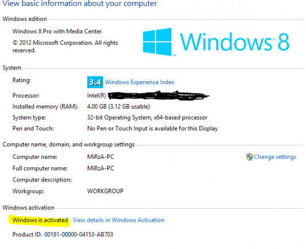 @অন্ত: যদি ইউজার অ্যাকাউন্ট পিকচার আর লক স্ক্রীন change করা যায় তাহলে আপনার Windows 8 Activated হবার কথা । Desktop এ Computer এর Properties এ গিয়ে দেখুন Activated কিনা ? (উপরে আমার চিত্রের মত )
