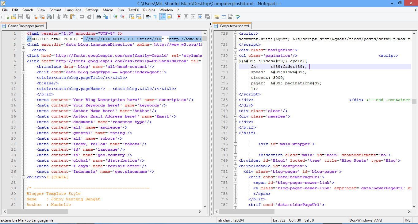Notepad++ দিয়ে আপনার টেমপ্লেট টি এডিটিং করতে ফাইল মেন্যু থেকে Open এ ক্লিক করুন এবং টেমপ্লেটের লোকেশন দেখিয়ে দিন। টেমপ্লেট টি open হলে নির্দেশনা অনুযায়ী এডিটিং করে নিন। উল্লেখ্য যে, পরবর্তী পোষ্টসমূহে বিভিন্ন ভাবে এডিটিং করার জন্য নির্দেশনা দেওয়া হবে। উক্ত পোষ্টসমূহে যেভাবে এডিটিং করতে বলা হবে, ঠিক সেভাবেই এডিটিং করবেন।