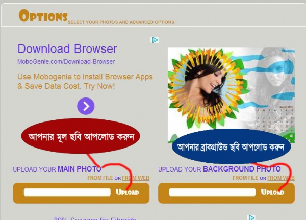 Upload your main photo অপশনে ক্যালেন্ডারের প্রধান ছবি হিসেবে যে ছবিটি দেখতে চান সে ছবিটি Upload করুন। এরপর Upload your background photo অপশনে ক্যালেন্ডারের ব্যাকগ্রাউন্ডে হিসাবে যে ছবি দেখতে চান সে ছবিটি একই নিয়মে Upload করুন।