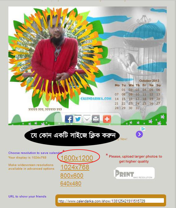 উপরের নিয়মে তৈরি হওয়া ক্যালেন্ডারটি আপনার পিসিতে Save করে রাখুন।