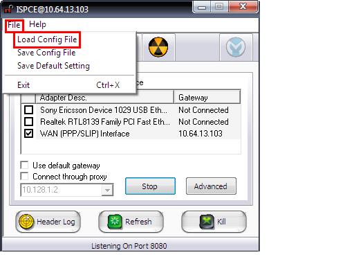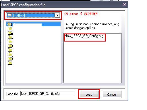 ৪। ISPCE ওপেন করুন । File থেকে Load config File এ ক্লিক করুন ।