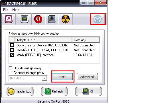 Tools-Options-Advanced-Network-Manual proxy configuration থেকে HTTP proxy দিন - 127.0.0.1 এবং port দিন 8080 . ok ক্লিক করুন । আপনার ব্রাউজার এখন ফ্রি নেট ব্যবহার করার উপযোগী ।