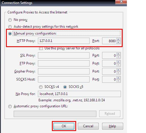 ৮। এবার আপনি যে ব্রাউজার ব্যবহার করতে চান তাতে proxy – port সেট করতে হবে । আমি এখানে Mozilla Firefox এ দেখালাম ।
