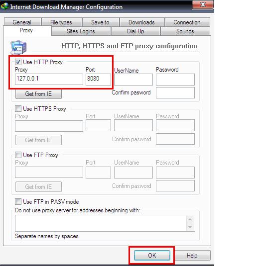 ১০। ডাউনলোড করার জন্য IDM ( Internet Download Manager ) ব্যবহার করুন । IDM এ Options- Proxy থেকে Use HTTP Proxy তে টিক দিন । proxy দিন - 127.0.0.1 এবং port দিন 8080 . ok ক্লিক করুন । আপনার IDM এখন ফ্রি ডাউনলোড করার উপযোগী ।
