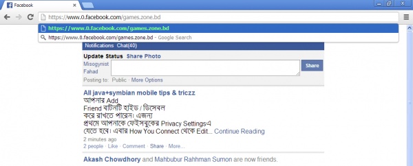> এরপর যেকোনো ব্রাউজার চালু করুন। ব্রাউজারে লিখুন 0.facebook.com