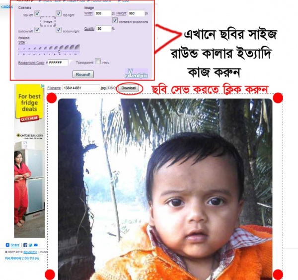 কাজ করে Download বাটনে ক্লিক করে আপনার রাউন্ড করা ছবিটি সেভ করে রাখুন।