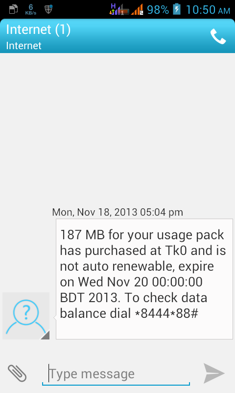 যদিও রবির 187 MB এর কোন daily pack নেই। তো আর দেরি না করে ঝটপট চেক করুন। প্রথমে ডায়াল করুন *8444# তারপর purchase এর জন্য 1 press করে reply দিন নিচের মত