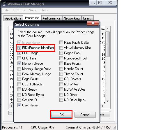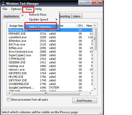 এবার Ctrl+Alt+Delete চেপে Task Manager ওপেন করুন । View এ ক্লিক করুন । select columns এ ক্লিক করুন । PID তে টিক দিয়ে ok ক্লিক করুন ।