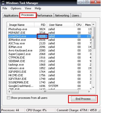 ধরুন , আপনার পিসিতে অন্য software Data / ইন্টারনেট ব্যবহার করছে । তাহলে তাকে বন্ধ করবেন কিভাবে ? আমি এখানে cometbird বন্ধ করে দেখাব । মনে রাখুন এখানে cometbird এর PID –3208