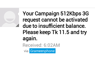 অনেকেই হয়ত টেকটিউনস থেকে GP এর 10টাকায় 500MB offer সম্পর্কে জানতে পেরেছেন এবং নিয়েছেন . আমি এ অফারের অন্তভুক্ত থাকার পরও পেলাম না . আজ বিকালে আমি অফারটি সম্পর্কে জানতে পারি এবং ট্রাই করলাম এবং নিচের মেসেজটি পেলাম