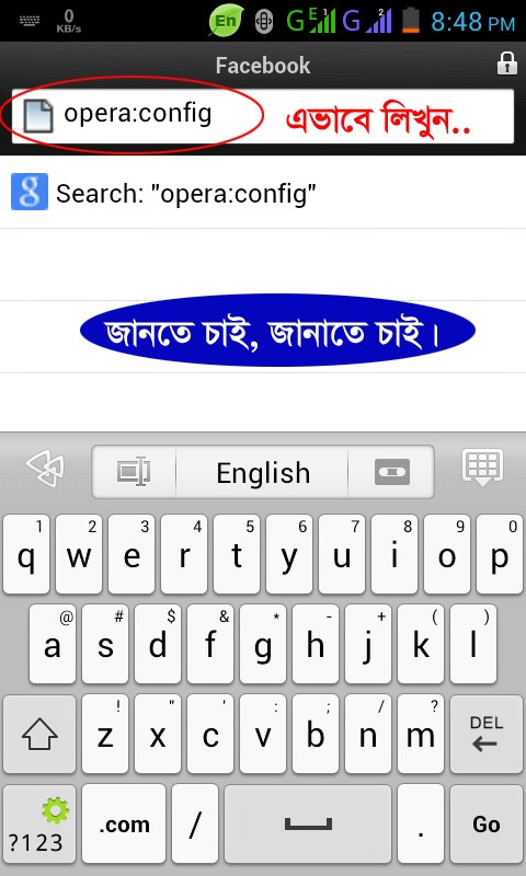 প্রথমে আপনার Opera Mini Browser টি ওপেন করুন, এরপর URL বক্স এ opera:config লিখে Go তে ক্লিক করুন,