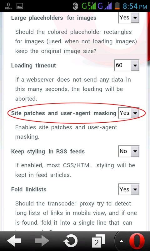২। দ্বিতীয় কাজ এবার Loading Timeout option এর নিচে site patches and user agent masking বক্স থেকে Yes থেকে “No” সিলেক্ট করে দিন ।