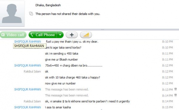 নিচে তার সাথে skype এর chat টা দিলাম